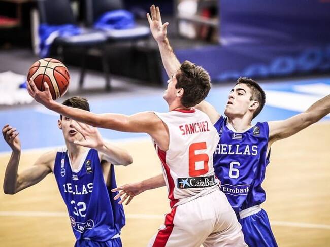 Pablo Sánchez penetra por la zona para intentar sumar dos puntos / FIBA