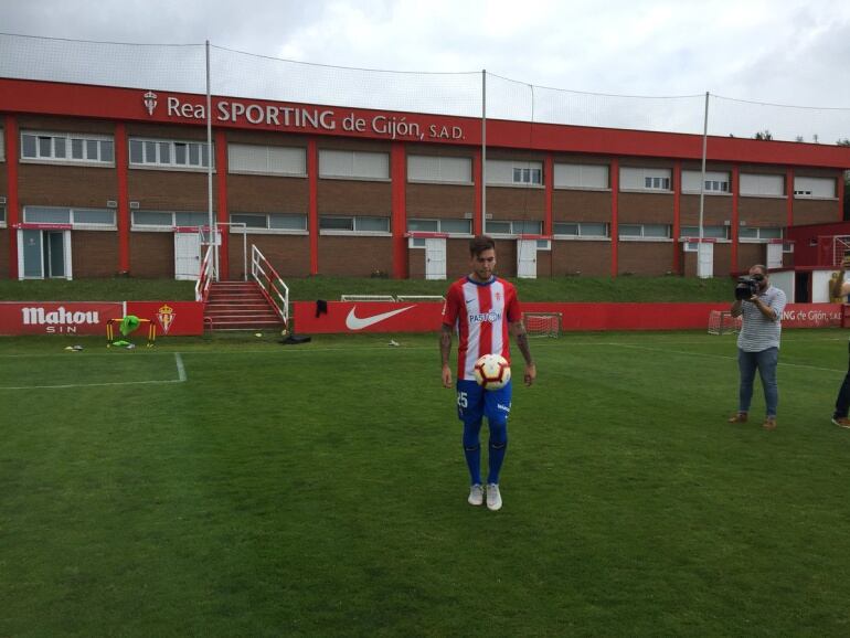 Álvaro Jiménez ya luce en rojiblanco. El extremo ha sido presentado en la Escuela de Fútbol de Mareo ante una gran cantidad de aficionados sportinguistas. Para ellos, y para el club y la ciudad, tuvo palabras en su puesta de largo. "Está claro que el Sporting, su afición y su ciudad son de Primera. Para eso hemos venido, para conseguir el objetivo", declaró.