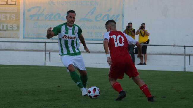 Dani Aquino encara a Abel Gómez en el Sanluqueño-Real Murcia (Foto: At. Sanluqueño)