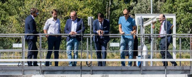 La depuradora está en funcionamiento desde el año pasado, según el alcalde, Adolfo López, pero es esta mañana cuando el consejero Suárez Quiñones visita estas instalaciones, que suponen terminar con las sanciones que este municipio venia pagando por no tener esta obra en el tiempo fijado por la UE.