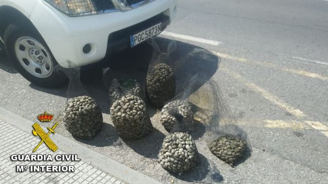 La Guardia Civil se incautó de un centenar de kilos de almeja en el interior de un vehículo que fue interceptado en Portonovo, en el transcurso de un control de carretera