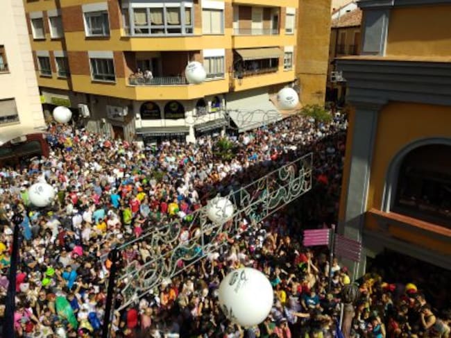 La espera es infinitamente más larga que el ansiado momento. Más de 355 días aguardando lo que apenas dura dos segundos: el estallido de un cohete que anuncia que, en Aranda, se han terminado los preparativos y es momento de vivir nueve días de fiesta. El momento se repite cada año y también en este 2018 el balcón del Ayuntamiento ha sido escenario del tradicional Cañonazo, cuya mecha encendía la alcaldesa de Aranda, bajo la cauta y atenta mirada de la Reina y Damas de las fiestas, la pregonera de este año, Consuelo Nebreda, miembros de su equipo de gobierno y del resto de la corporación arandina. Bajo todos ellos, una enfervorecida multitud abrumadoramente joven, casi infantil en muchos casos, con unas desbordantes ganas de fiesta, que se refleja en estrambóticos atuendos, compuestos por un collage de piezas superpuestas, comenzando por tutús vaporosos a la cintura sobre cualquier otro tipo de prenda, continúa con guirnaldas floreadas al cuello para rematar con todo tipo de variadas gafas, a cual más extravagante. Sin olvidar el tradicional peto de fiestas, que sigue siendo uniforme oficial para buena parte de la chavalería, una prenda destinada a tener un estreno duro durante el Cañonazo. Y es que quien se atreve a colocarse frente al ayuntamiento y en la zona central de la fiesta tiene que asumir que será teñido de color amarillo con la rupestre técnica de ser duchado por líquido en el que se ha diluido colorante alimenticio. Y con este gesto los jóvenes que ahora protagonizan el Cañonazo hacen realidad el eslogan de una bebida gaseosa que se hizo popular hace décadas y que solo recuerdan las generaciones anteriores a los Milenials. En Aranda la gaseosa en el cañonazo se convierte auténticamente en “La Chispa de la Vida”.