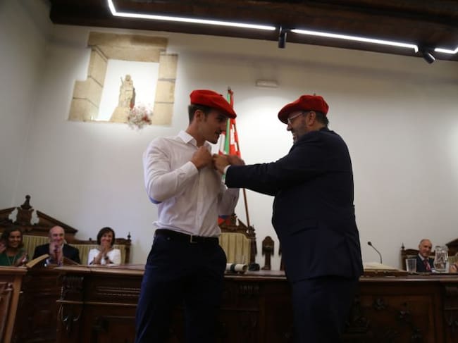 En un rebosante Salón de Plenos, el Ayuntamiento de Hondarribia ha impuesto la insignia de oro al joven deportista de la localidad Ion Areitio. Además de la Corporación al completo, han acudido al acto familiares, amigos y conocidos del joven.