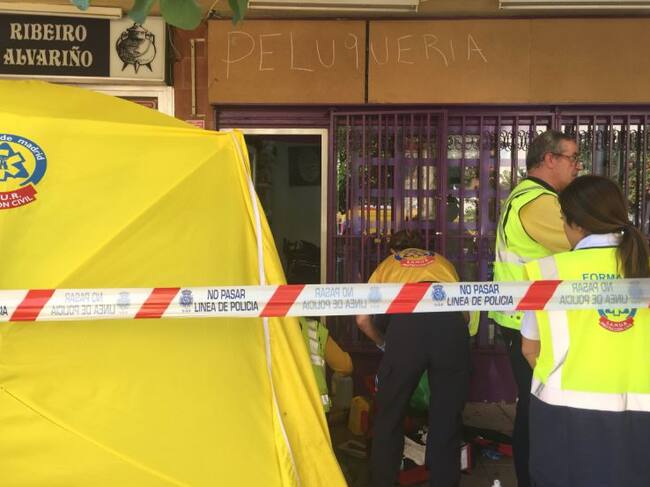 Fuentes de Emergencia Madrid solo han podido confirmar el fallecimiento de la mujer a las puertas de una peluquería tras practicar sin éxito las maniobras de reanimación durante más de treinta minutos y pese a realizarle una taracotomía de urgencia, que un masaje directamente en el corazón.