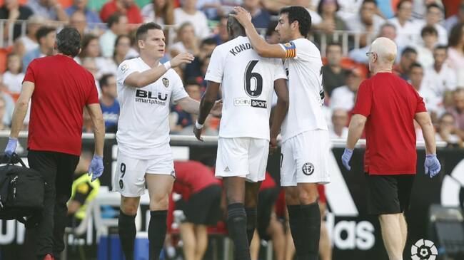 El sistema de juego de Marcelino no se puede interpretar sin la presencia de Geoffrey Kondogbia, que tuvo que abandonar el terreno de juego a los 12 minutos del encuentro ante el Betis como consecuencia de un mal apoyo en el mismo tobillo del que se lesionó en Cornellà y que le impidió jugar en Orriols.