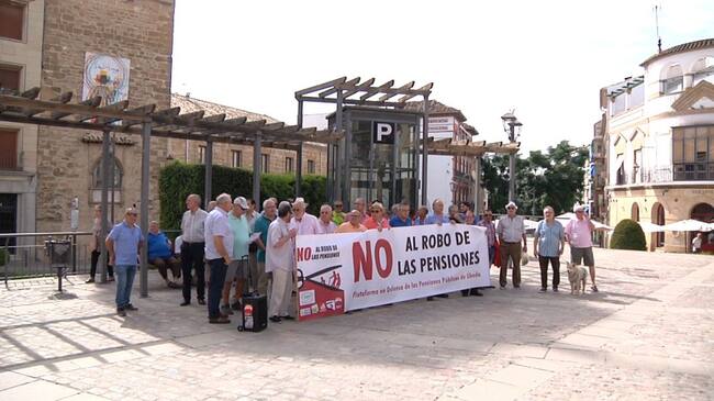 Bajo la convocatoria de la Coordinadora Estatal en Defensa del Sistema Público de Pensiones, a partir de las 10:30 de la mañana se están sucediendo estos actos de protesta en las plazas de los ayuntamientos de Jaén, Úbeda, Lopera, La Carolina, Linares, Andújar, Bailén y Huelma. Una movilización a nivel estatal porque consideran insuficiente la subida del 1,6%, que a juicio de los convocantes, no garantiza un sistema público de pensiones solvente para los actuales y futuros pensionistas.