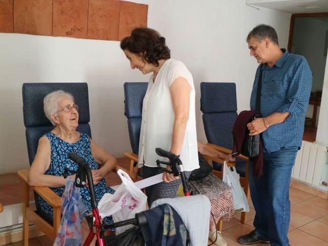 Fina Santiago conversa con una de las internas de la residencia de Sant Joan / Cadena SER