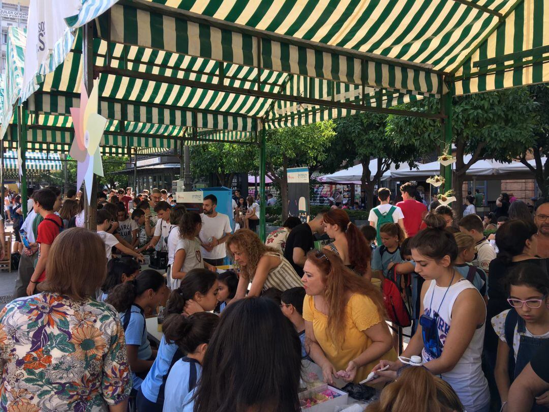 El viernes, alumnos y alumnas de diferentes centros escolares, participarán en talleres de sensibilización, artes plásticas, eficiencia energética, robótica, reciclaje y tintes y semillas, en los módulos instalados en la Plaza de las Tendillas.