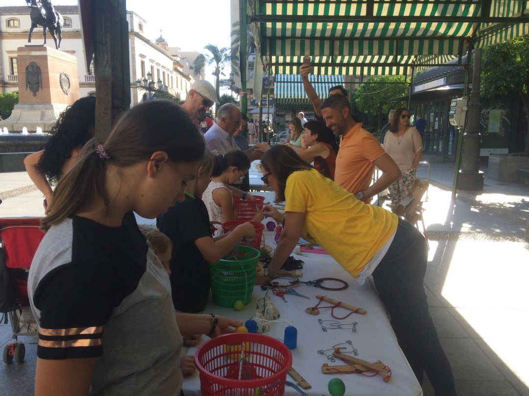La última jornada de actividades paralelas del Congreso de la Sabiduría y el Conocimiento volvió a hacer de Las Tendillas el lugar de referencia para disfrutar de actividades de todo tipo. Los primeros en llegaron la Sociedad Andaluza de Educación Matemática (Saem-Thales). Que con diversos juegos matemáticos hicieron las delicias de todos los presentes. Una mañana para pensar y resolver los diferentes problemas que se planteaban en la carpa tanto para niños como para adultos.