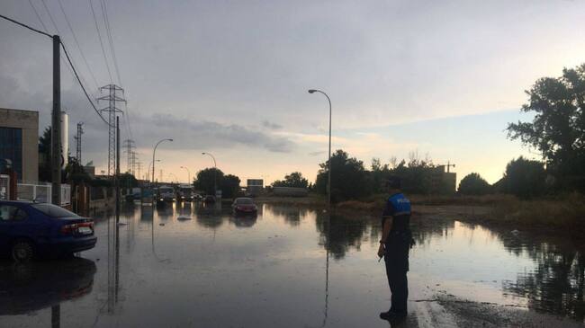 Las calles Kripton, Nitrógeno, Topacio y Aluminio han permanecido cortadas por la Policía Municipal ante las inundaciones en la calzada.