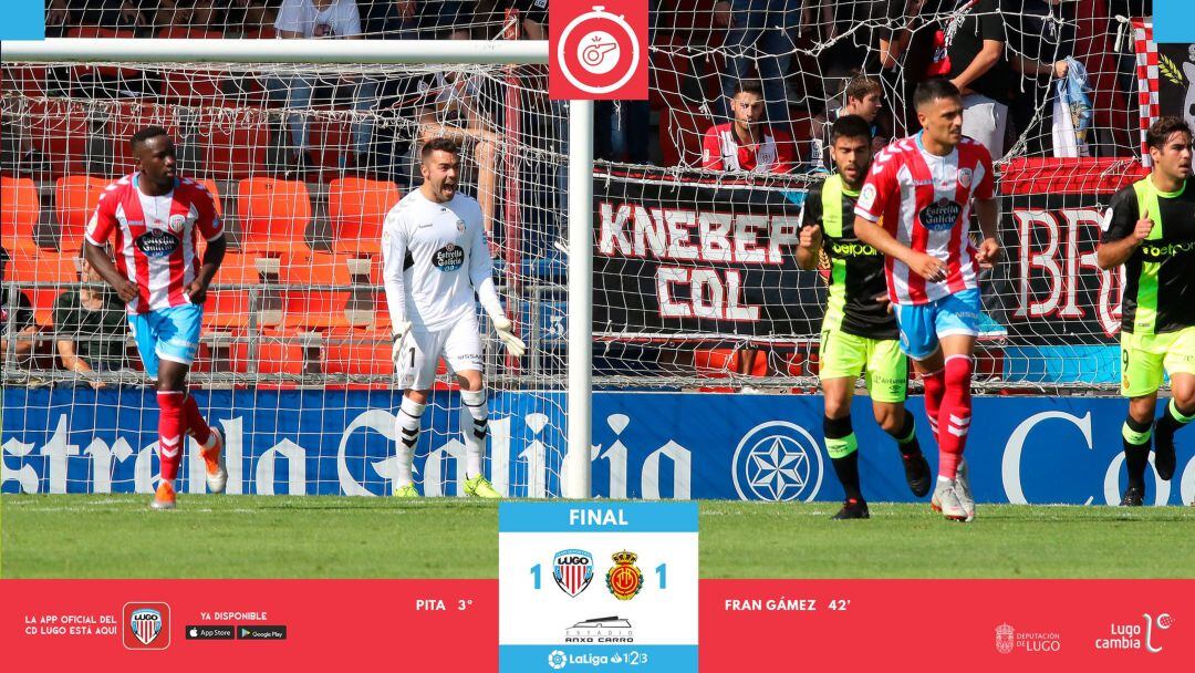 Lugo y Real Mallorca jugaron esta tarde un partido de alternativas que acabó en tablas, sobre todo, por lo que perdonaron ambos conjuntos en el área rival. Pita, que está en racha, adelantó al Lugo y a partir de ahí, Salva Sevilla tomó el mando del partido. Gámez empató con un golazo y ninguno de los dos equipos pudo volver a marcar pese a sumar ocasiones de sobra para ello.