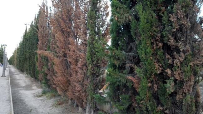 Cipreses afectados por hongos en el barrio de Altabix / Radio Elche Cadena SER
