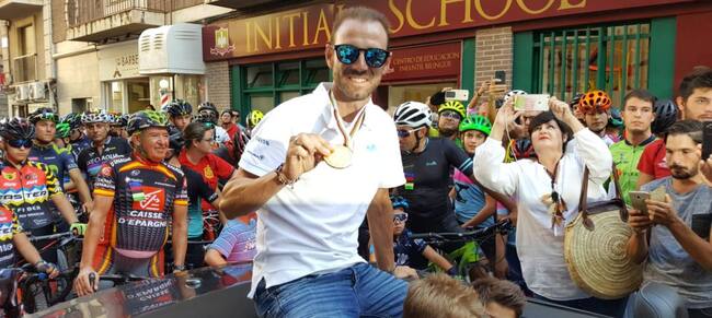 El alcalde ha recibido Valverde con el vídeo de los últimos 300 metros de su medalla de oro y luego ha hecho una descripción fotográfica de su imagen en la recta final posteriormente lo comparado con Alejandro Magno.