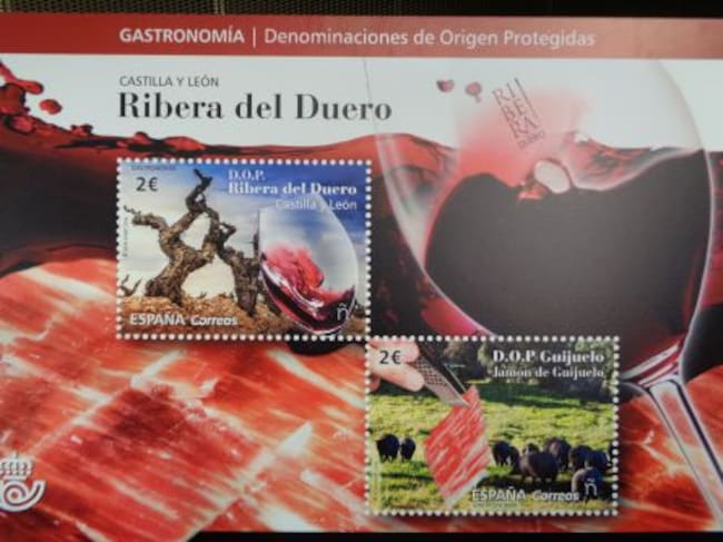 El vino Ribera del Duero comparte una edición filatélica con la Denominación de Origen Protegida Jamón de Guijuelo