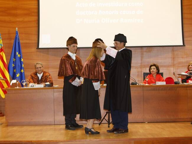 Momento de la investidura a Nuria Oliver como Doctora Honoris Causa / UMH