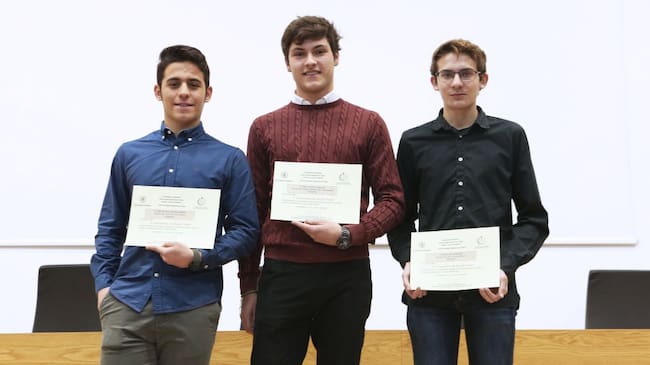 Los estudiantes ganadores de la fase local de la Olimpiada de Física. A la izquierda, Pablo Criado