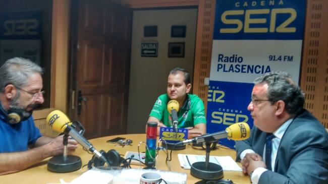 Enrique Neria (izq) Rafael Sanz (Centro) y Pedro Cordero (dcha) en los estudios de SER Norte de Extremadura / Cadena SER