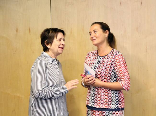 La historiadora Maria Jesús Lluelles conversa amb la ministra de Cultura, Olga Gelabert, abans de la presentació del llibre. / C.G. (ANA)