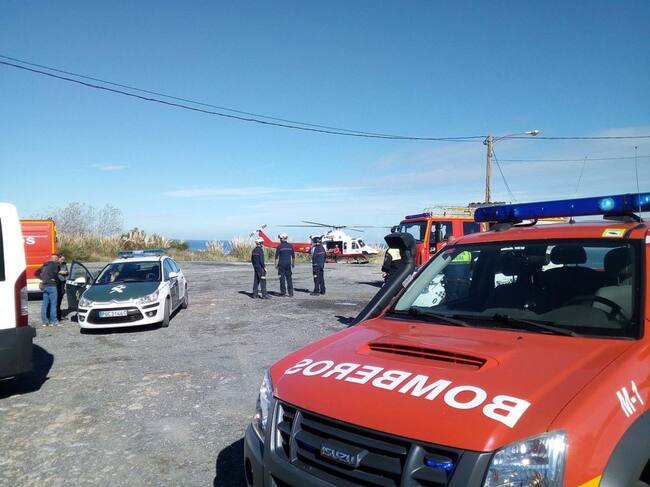 El personal del helicóptero y agentes de la Policía Judicial descendieron hasta la zona de rocas. / Emergencias Castro.