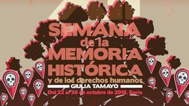 Una caída de la centenaria miliciana socialista Ángeles Flórez Peón impedirá que inaugure en Soria la XII edición de la Semana de la Memoria Histórica y los Derechos Humanos Giulia Tamayo (SMH). Ante este accidente, y esperando la pronta recuperación de Maricuela, el 22 de octubre Clemente Bernad Asiain hará los honores presentando el documental A sus muertos. A sus muertos, trata sobre el “Monumento a los Caídos” de Pamplona (cuyo nombre oficial es “Navarra a sus muertos en la Cruzada”) y su sentido en la ciudad como símbolo vigente en honor del golpismo y del franquismo. El monumento se utiliza el 19 de cada mes para celebrar misas en honor a los golpistas de 1936 y que asesinaron solo en Navarra a más de 3.500 civiles. El documental aborda a través de 6 preguntas a pie de calle la presencia del pasado más negro en el actual espacio urbano.