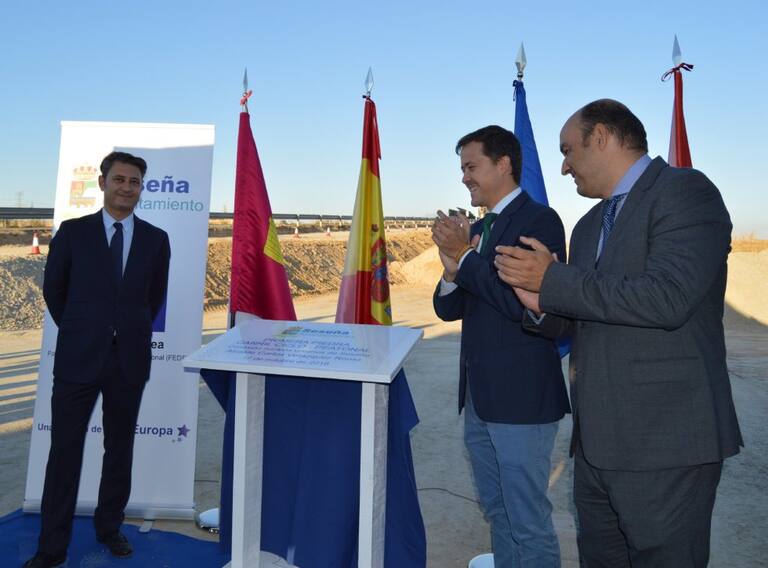 Primera piedra carril bici Seseña CASTILLA LA MANCHA.-El alcalde de Seseña coloca la primera piedra del carril bici que unirá los barrios del municipio toledano 17/10/2018