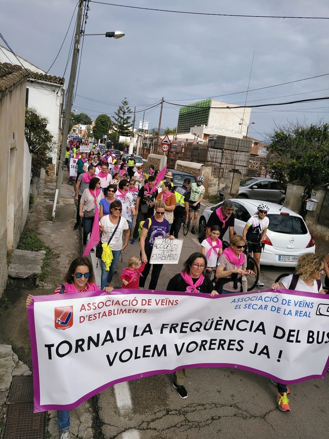 Alrededor de 300 personas han participado este sábado en la manifestación convocada por los vecinos de Establiments y el Secar de la Real para pedir aceras y más frecuencias de bus que les conecte con el centro de la ciudad, a cuyo municipio pertenecen estos barrios. Denuncian la falta de seguridad viaria y para demostrarlo han protagonizado una marcha por la carretera que lleva a estos dos núcleos de población.