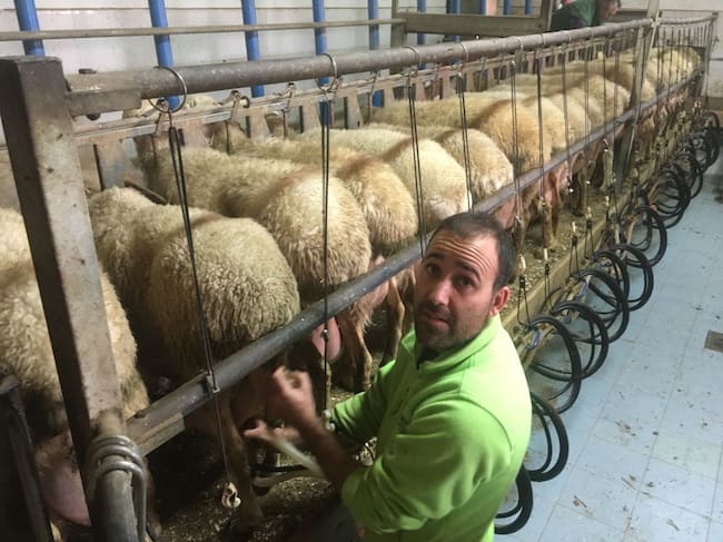 El Alcalde de Pollos, Javier García ordeñando ovejas en la explotación ganadera en la que trabaja / MANUEL RODRIGUEZ