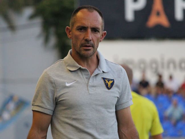 El técnico del UCAM Murcia CF dirigirá desde la grada de La Condomina a su equipo frente al Sevilla Atlético este domingo
