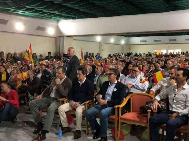 Vox llenó este domingo en Centro de Congresos del Hotel Guadalete de Jerez. Después de dos intentonas fallidas por organizar su primer acto público en la ciudad, la formación eligió este espacio para darse un baño de multitudes.