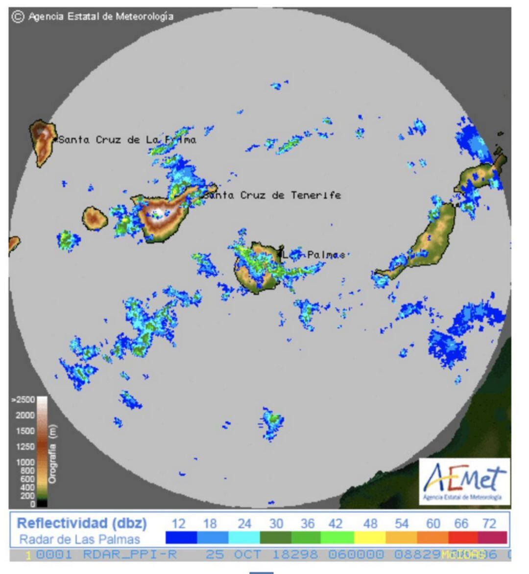 De acuerdo con el radar de la Aemet en Canarias, esa es la cifra rayos registrada en el archipiélago entre las 0.00 y las 6.00 horas de este jueves, día en el que cuatro islas están en aviso amarillo por lluvias: Tenerife, Gran Canaria, Lanzarote y Fuerteventura.