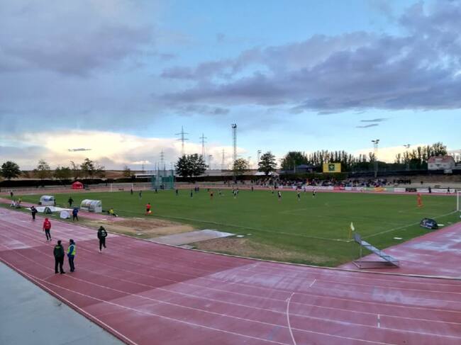 Imagen del irregular estado del terreno de juego de Las Pistas del Helmántico. / @UnionistasCF