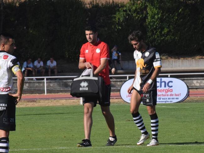 Imagen de Guille Andrés, retirándose lesionado en Las Pistas. / Unionistas de Salamanca