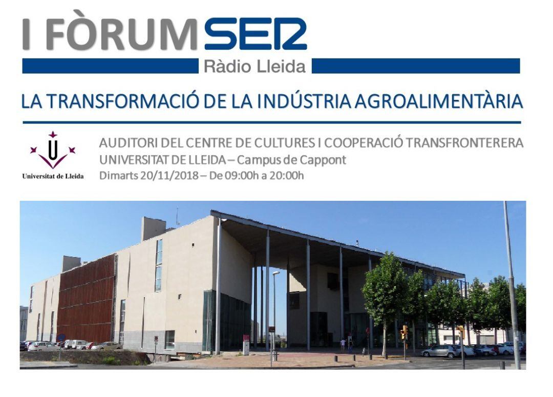RÀDIO LLEIDA organitza de la mà de la UNIVERSITAT DE LLEIDA la primera edició del FÒRUM SER on tractarem els temes més rellevants del gran moment de la indústria agroalimentària.