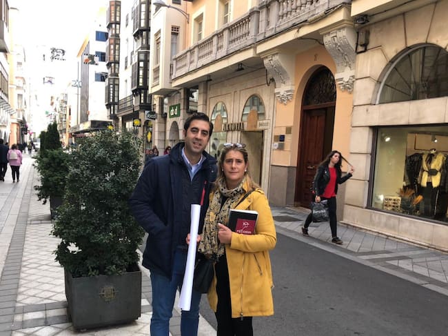 Jaime Curiel y Mila Aguado, con el plano del proyecto en la mano, en la calle Regalado / José María Francisco