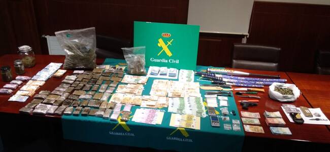 La Guardia Civil ha realizado 12 registros domiciliarios, 8 en viviendas y 4 en locales de Tres Cantos, Colmenar Viejo y Getafe. Se han intervenido 7.094 gramos de hachis, 3.847 gramos de marihuana, 100 gramos de aceite de Cannabis, 5 gramos de cocaína, 1,6 gramos de metanfetamina, utensilios para su venta y distribución, así como 67.860 euros en metálico y 5 vehículos.
