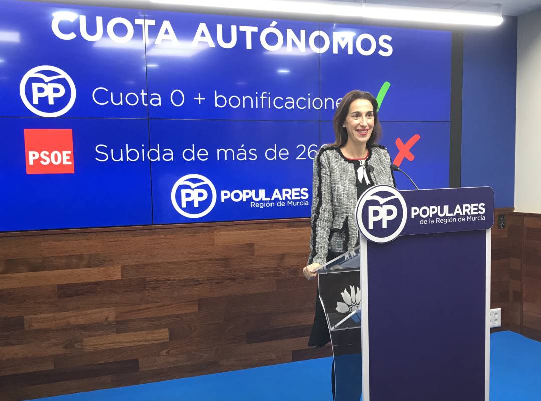 La portavoz del PP en la Región critica la subida de la cuota anunciada por el Gobierno de Pedro Sánchez para la base de cotización de la Seguridad Social, que se incrementarán, dice, al menos en 260 euros en 2019.
