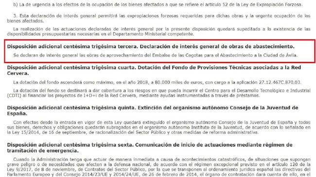 Pero la disposición adicional vigésimo primera de los presupuestos nada tiene que ver con Ávila. La única referencia en los presupuestos es la declaración de interés general, como este lunes aseguraba el diputado del PSOE por Ávila, Pedro José Muñoz.