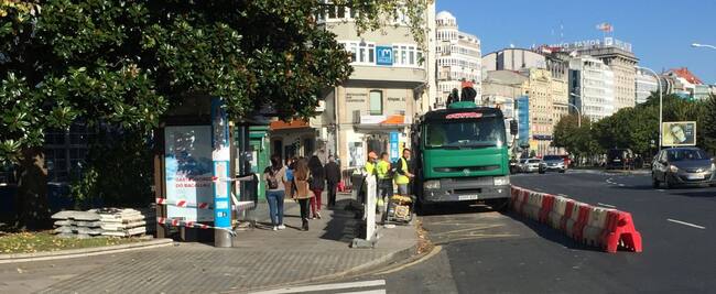 Esta mañana ha comenzado un nuevo tramo de obras del carril bici a la altura de la plaza de Ourense en A Coruña. Unos trabajos que no están afectando de momento a la circulación de vehículos en la zona ya que se mantienen los tres carriles de circulación con total normalidad. El vallado de obra comprende únicamente la parada del bus urbano, que se ha trasladado al número uno de la avenida de Linares Rivas, un poco más adelante.