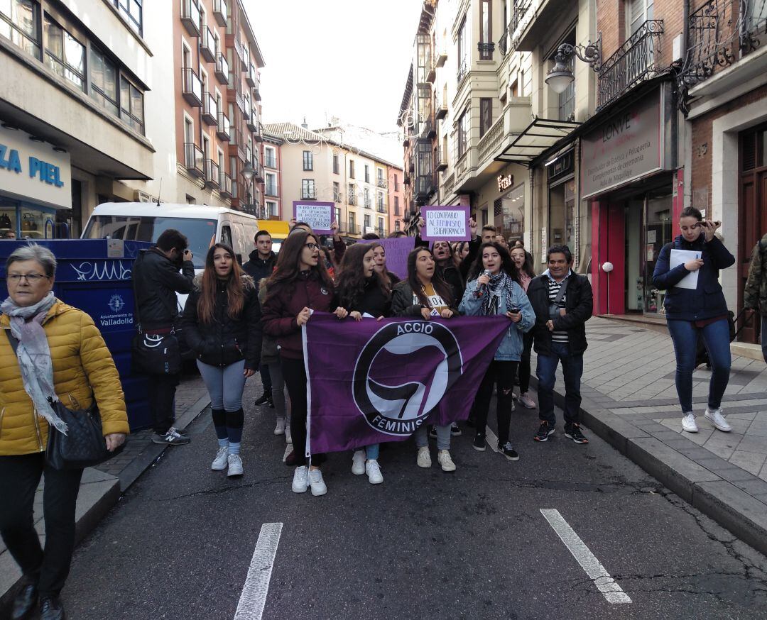 Medio millar de estos estudiantes se han manifestado en Valladolid para protestar por las agresiones machistas y pedir una asignatura sobre la sexualidad.