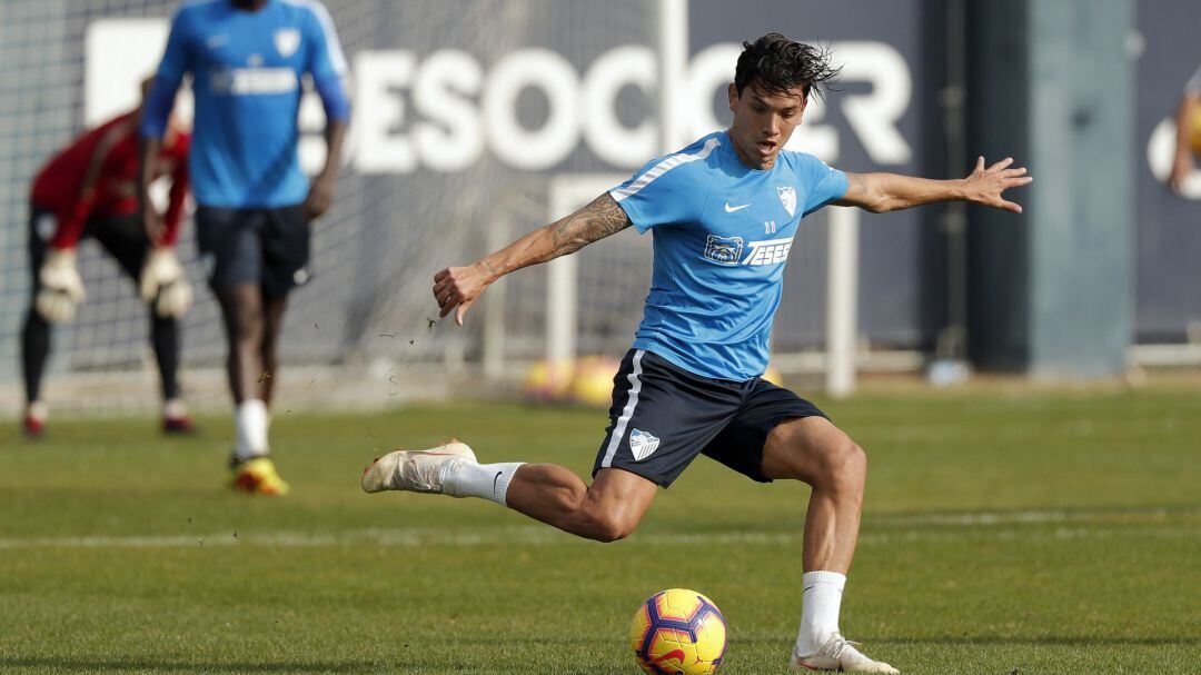El defensa del Málaga Diego González, que trabajó ayer en el gimnasio por precaución, se ejercitó con normalidad esta mañana en el anexo de La Rosaleda.