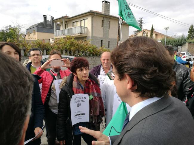 El presidente popular a su llegada al centro ha sido abordado por representantes del sindicato USCAL que aúna a veterinarios y farmacéuticos entre otros y que están en huelga solicitando la los mismos derechos que los trabajadores del SACYL que trabajan en tareas asistenciales. Los trabajadores le han hecho llegar sus demandas y le han solicitado el cese del consejero de presidencia José Antonio de Santiago-Juárez.