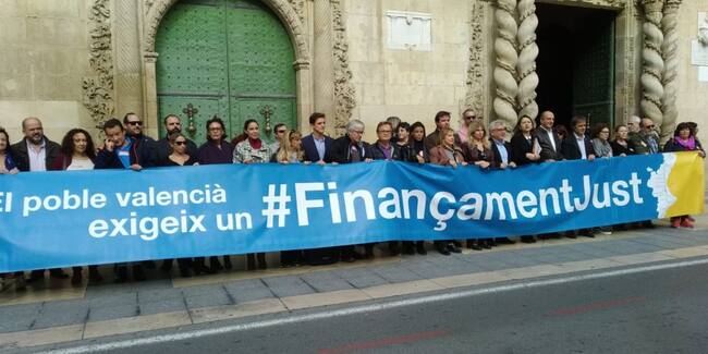 El grito para que no se olvide que la Comunitat Valenciana es una de las autonomías peor financiadas por el Gobierno central, también se ha oído en Alicante. En la plaza del Ayuntamiento, al igual que ha ocurrido en muchas localidades, los integrantes de la Plataforma por un Finançament Just se han concentrado al mediodía de este viernes: partidos políticos, con excepción del PP, sindicatos, la CEV (no con su presencia pero sí con su apoyo explícito a la Plataforma) y organizaciones civiles.