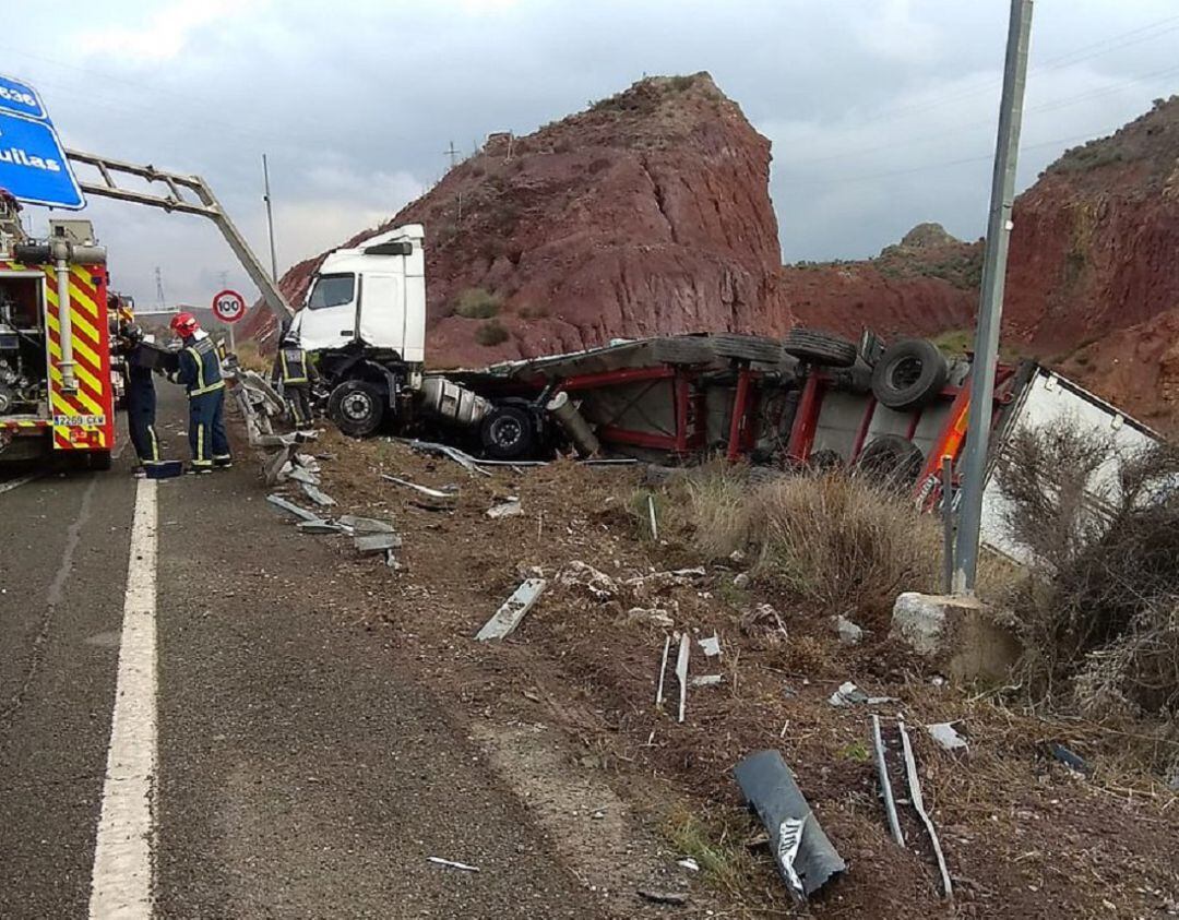 El conductor de un camión ha sido rescatado del interior de la cabina del vehículo tras sufrir un accidente cuando circulaba por la autovía A-7 a su paso por Lorca, según ha informado el Teléfono Único de Emergencias de la Región de Murcia 1-1-2.