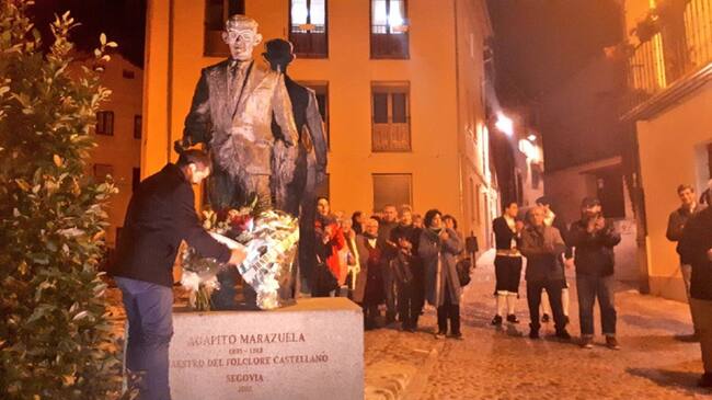 Con una ofrenda floral en la estatua de la Plaza del Socorro y la interpretación de la popular " Entradilla " se ha vuelto a rendir homenaje a la figura del folklorista segoviano Agapito Marazuela con motivo del 127 aniversario de su nacimiento. No podían faltar a este homenaje componentes de la Ronda Segoviana, Nuevo Mester de Juglaría, grupo de danzas La Esteva, escuela de dulzaina de Segovia y representantes institucionales de los ayuntamientos de Segovia y Valverde del Majano. Este año con un invitado especial, el músico gallego Carlos Núñez que esta tarde presenta su último libro en la Diputación Provincial.