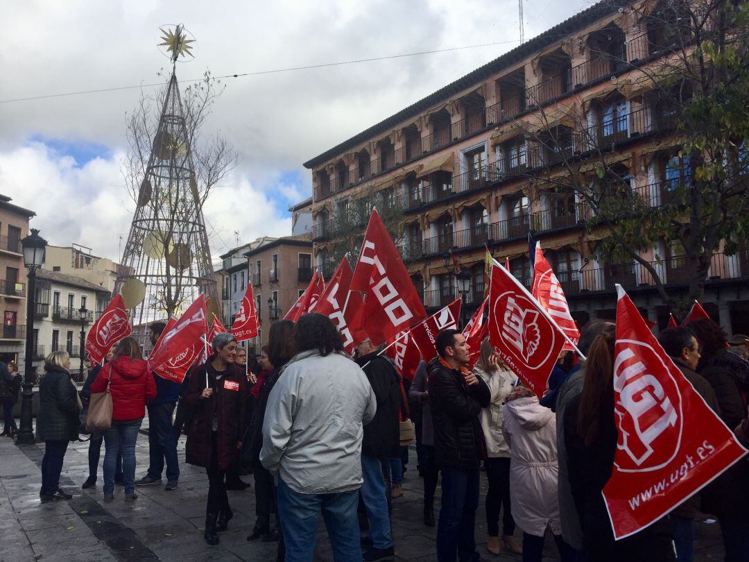 Los sindicatos se han concentrado en la plaza de Zocodover para pedir a la patronal que firme un convenio fundamental para el crecimiento de la demanda interna. Consideran que es un sector donde sí se nota la salida de la crisis y sus trabajadores han realizado muchos sacrificios en los peores años que ahora deben empezar a recuperar.