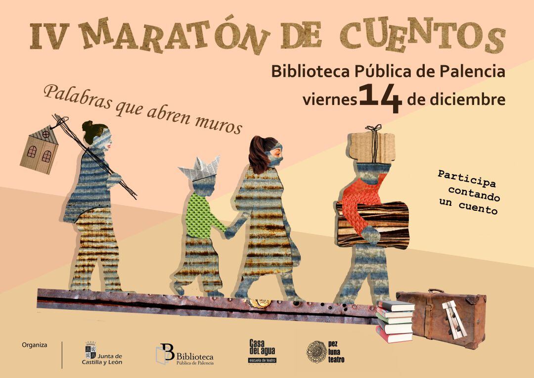 "Palabras que abren muros" es el lema que lanza este IV Maratón de Cuentos palentino, otros mundos y otras culturas, historias de viajes y travesías en búsqueda de un nuevo hogar, aventuras en las que conocer otros idiomas, otros paisajes, otras comidas, otros climas...relatos e historias que nos ayuden a tener una mirada abierta a lo diferente, lo desconocido, lo que llega nuevo.