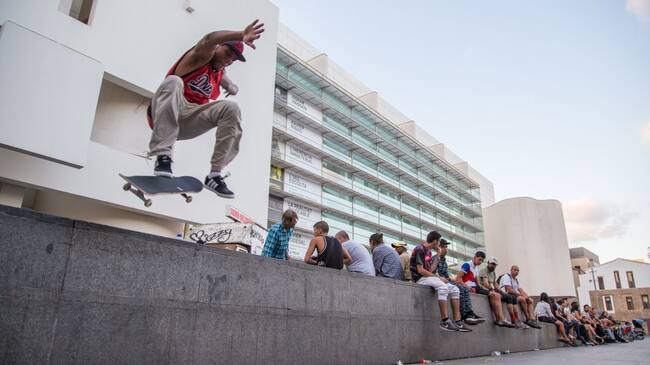 Trucs d'un patinador a la Plaça dels Ângels de Barcelona, davant el MACBA. / Artur Debat / Getty Images