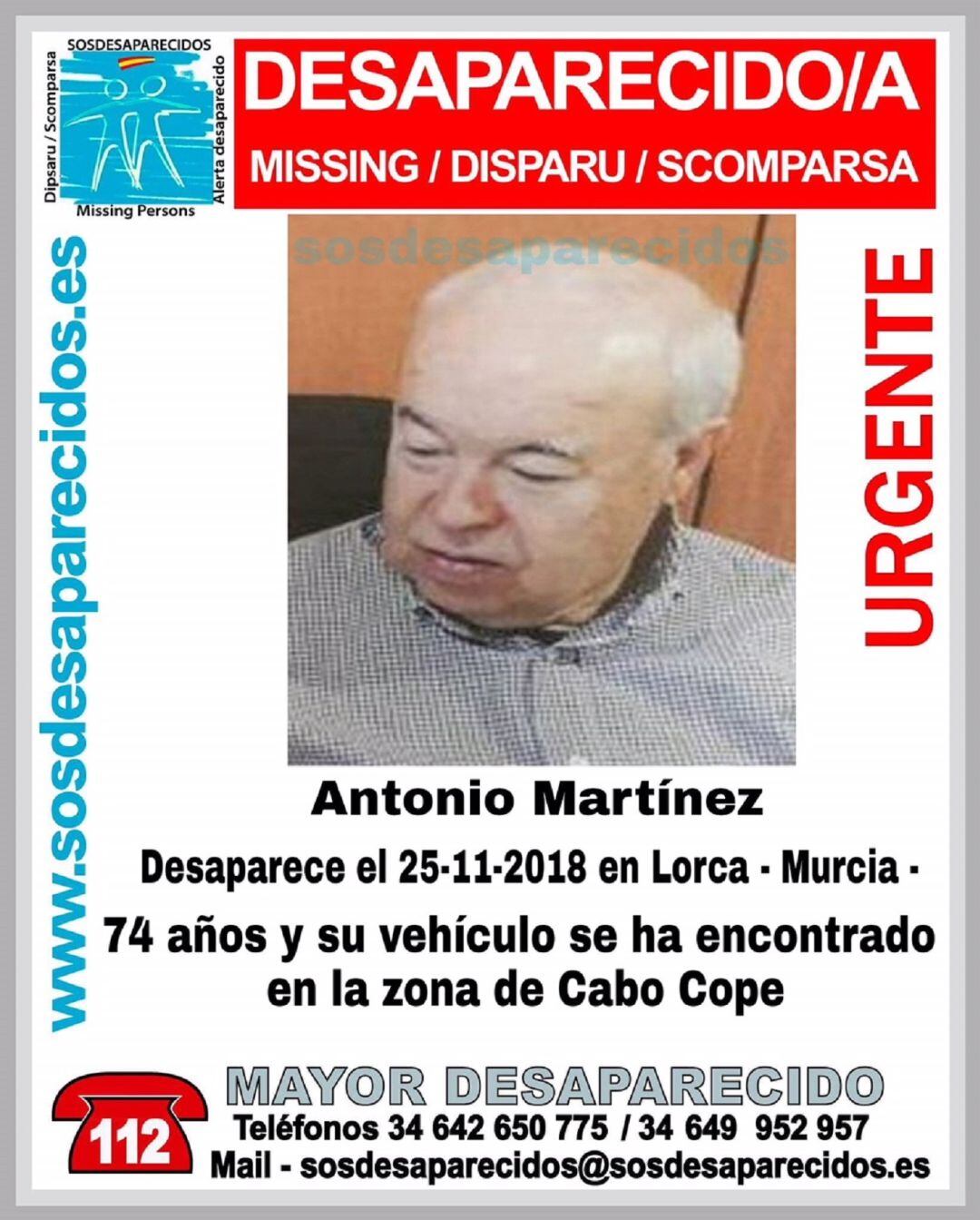 El mayor desaparecido es un conocido empresario de la automoción, el curtido y la hostelería en Lorca