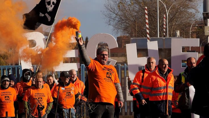 Desde las siete de la mañana, entorno a un centenar de trabajadores protestan sin incidentes a las puertas de la fábrica contra el ERE de extinción