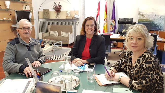 La presidenta de la Diputación, Ángeles Armisén, y la diputada y alcaldesa de Aguilar, María José Ortega, reciben al responsable de la Junta Vecinal de Mave (Palencia) / Diputación de Palencia